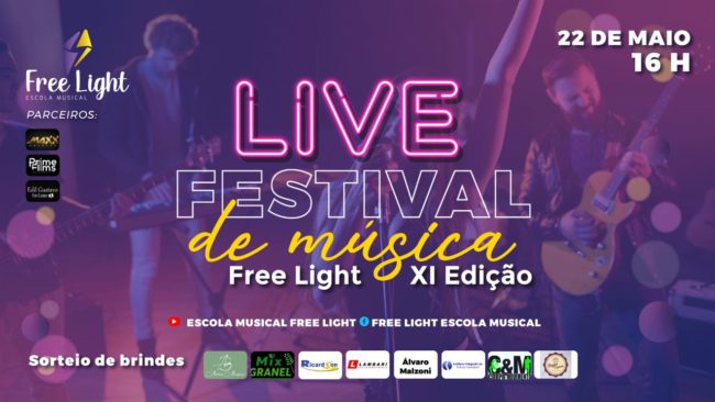 O tradicional Festival de Música Free Light apresenta bandas de diversos estilos formadas pelos alunos e professores de música da Free Light Escola Musical. São alunos de instrumentos e de técnica vocal, desde iniciantes até avançados. Nesta XI edição teremos a oportunidade de acompanhar o evento através de uma Live Especial. Devido a pandemia, cada…